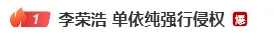 随后,“李荣浩 单依纯强行侵权”话题冲上热搜: