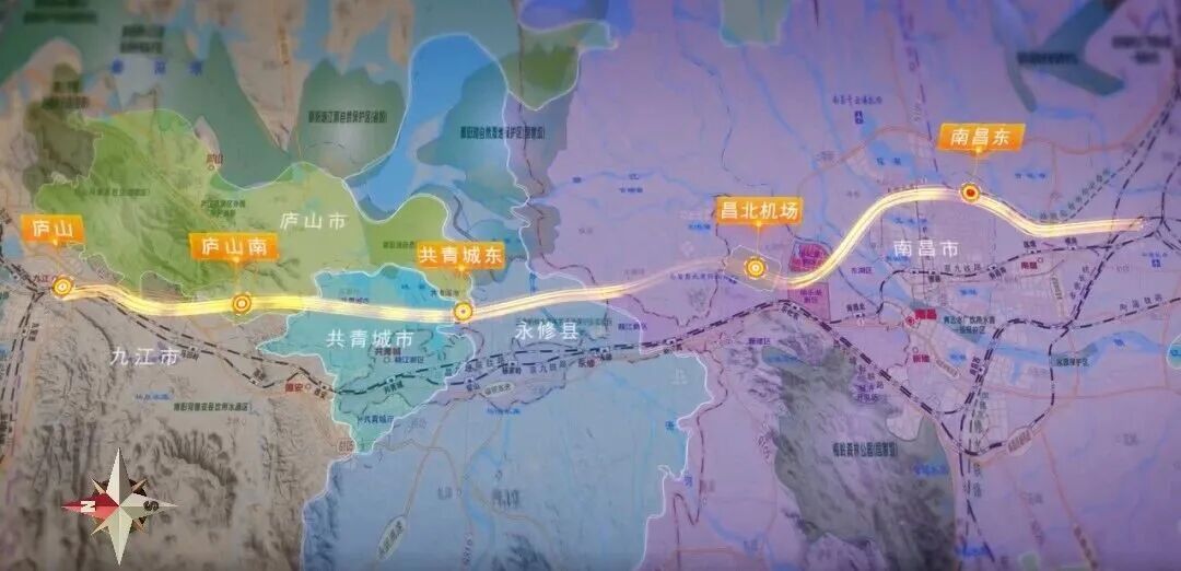 昌九高铁于2022年9月开工建设,预计于2027年3月具备开通运营条件。线路全长138公里,设计时速350公里,全线设庐山站、庐山南站、共青城东站、昌北机场站、南昌东站5座车站。