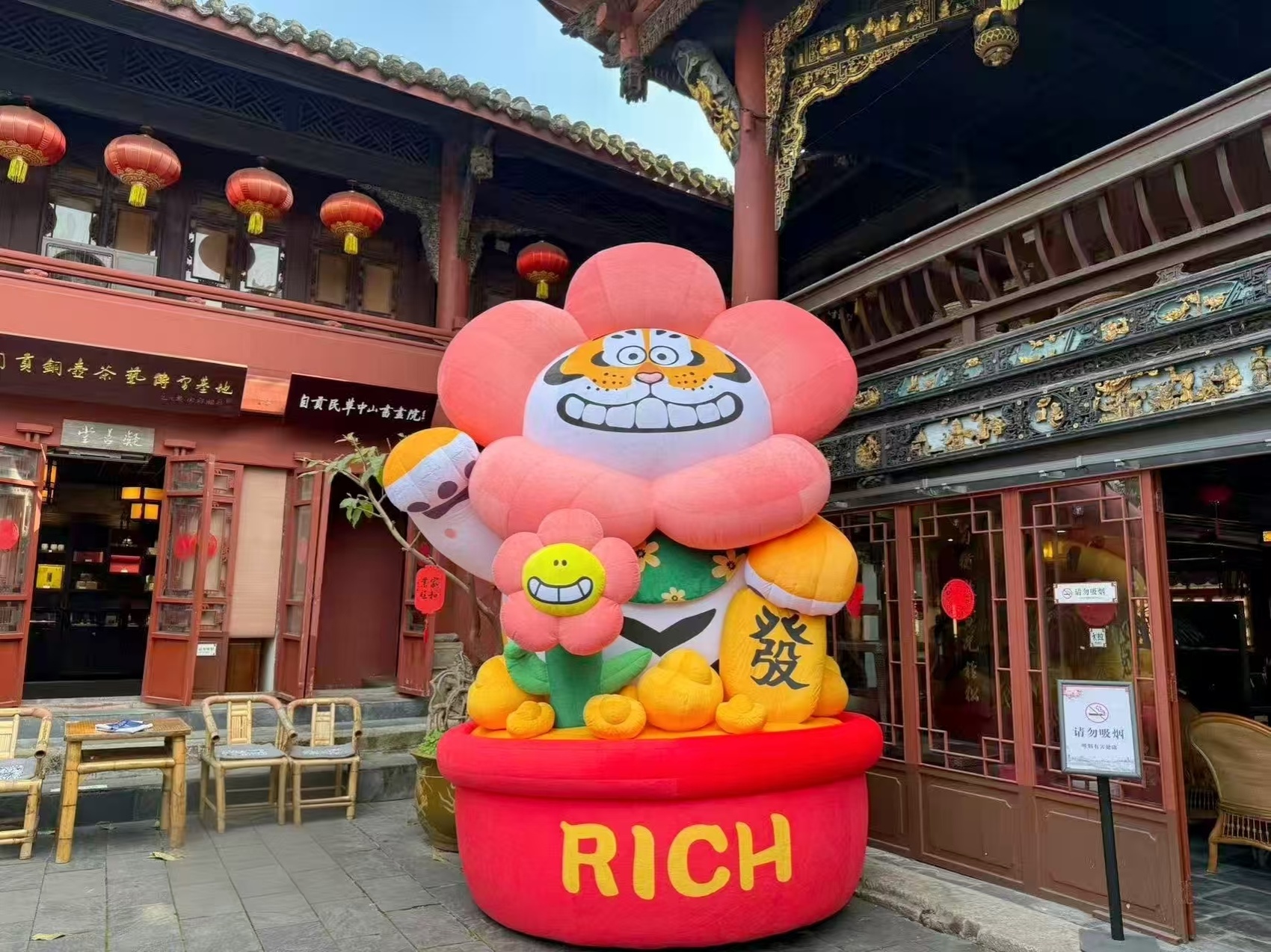 为进一步激活春季文旅市场,打造自贡春假特色文旅IP活动,自贡文旅携手“我不是胖虎”“小熊虫”精心策划推出的“自贡‘盐’值·不负春天——我不是胖虎×小熊虫的春日漫游计划”活动即将上线。目前,“我不是胖虎”“小熊虫”主题IP装置已全线落地。自流井老街的屋檐上、釜溪河畔、中国彩灯博物馆前等点位,萌趣可爱的IP形象随处可见,憨态可掬、氛围感拉满,成为自贡春日街头最吸睛的打卡风景。