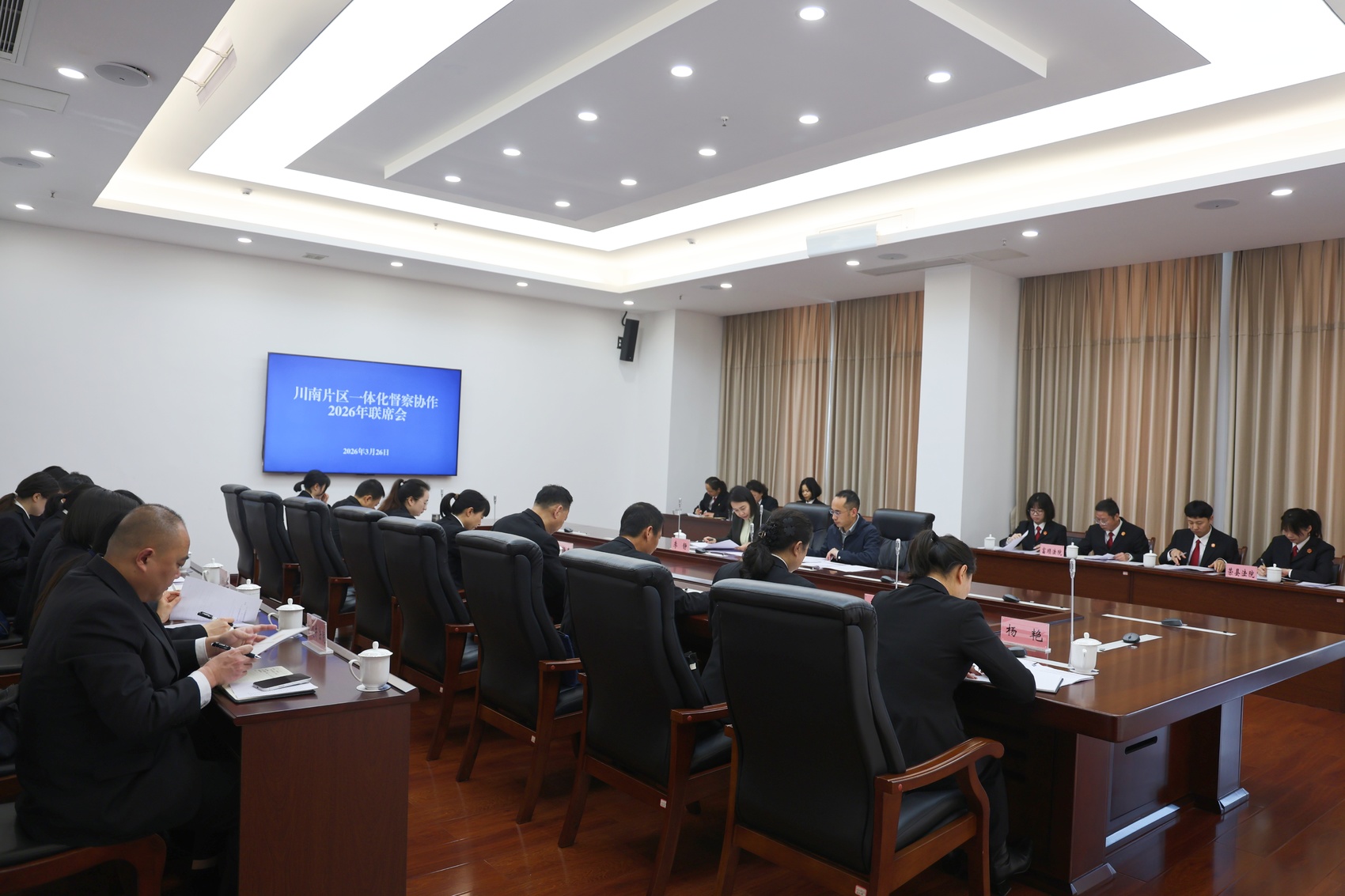 3月26日,四川法院川南片区(泸州、内江、宜宾、自贡)一体化督察协作联席会议在自贡市中级人民法院召开。会议深入贯彻落实全省法院党风廉政建设和反腐败工作部署,统筹推进川南片区法院督察工作协同联动、提质增效。
