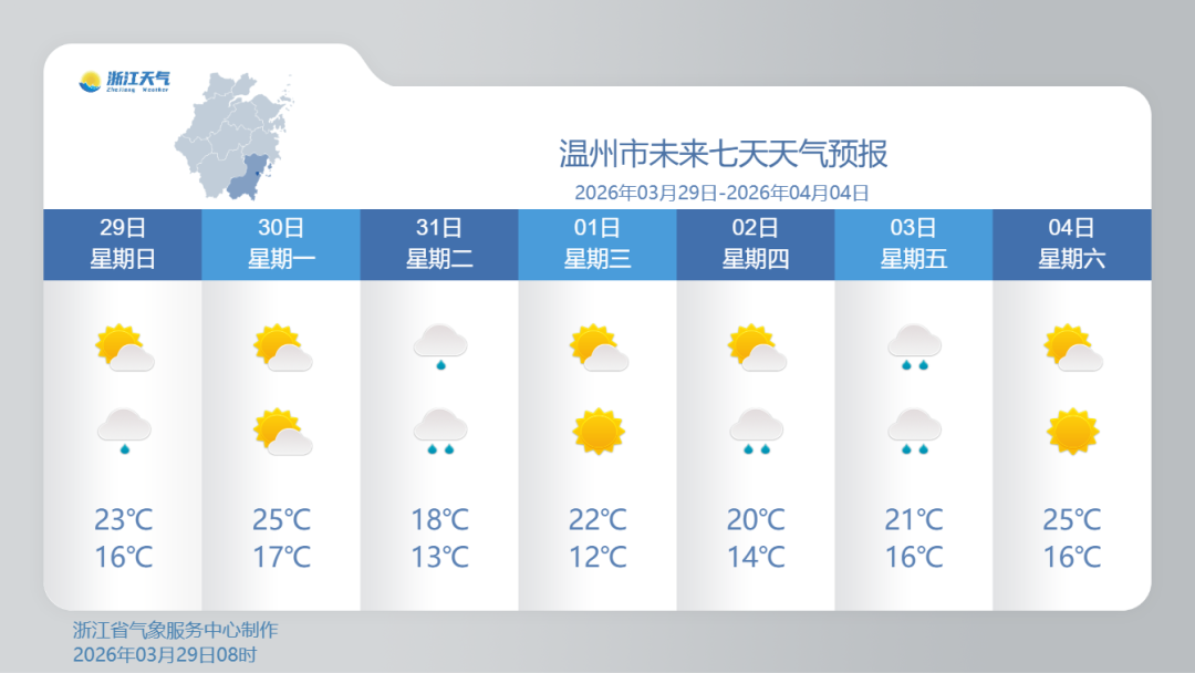 气温方面,受弱冷空气及雨势增强影响,将出现气温波动。例如温州明天最高气温可达25℃,但31日就将跌至18℃,公众需关注气温变化,及时调整着装,谨防感冒。