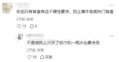 六六六:真没招了,我们店员也觉得很麻烦,卖盲盒不输入会员会被10倍罚款,赚一天工资都不够罚的。之前都不需要,现在搞得顾客都不想买了,因为真的很麻烦,尤其是排一个大长队。