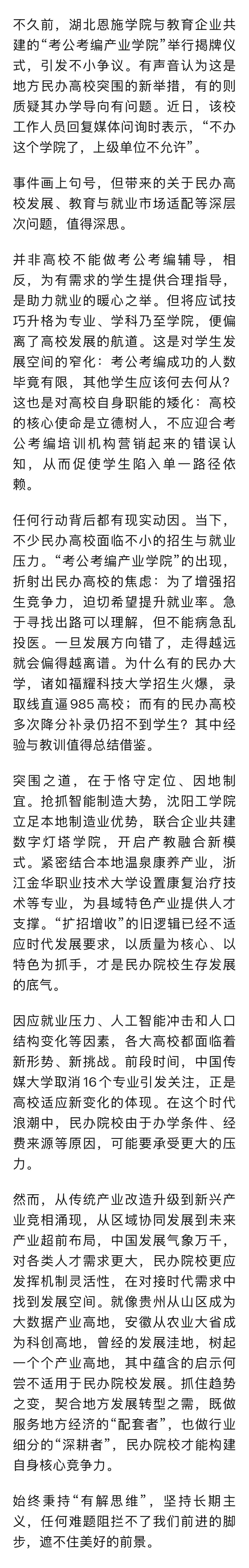 近日,湖北恩施学院与教育企业共建“考公考编产业学院”,引发热议。