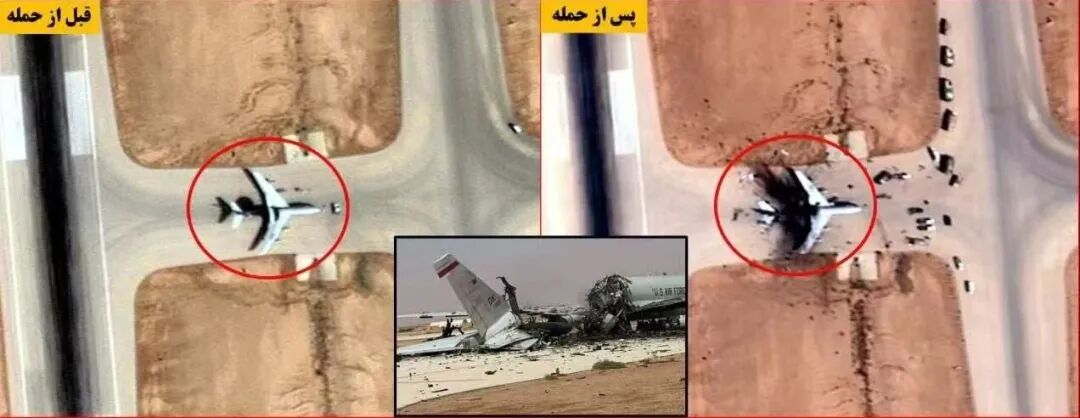 △伊朗方面公布的E-3预警机被摧毁卫星图