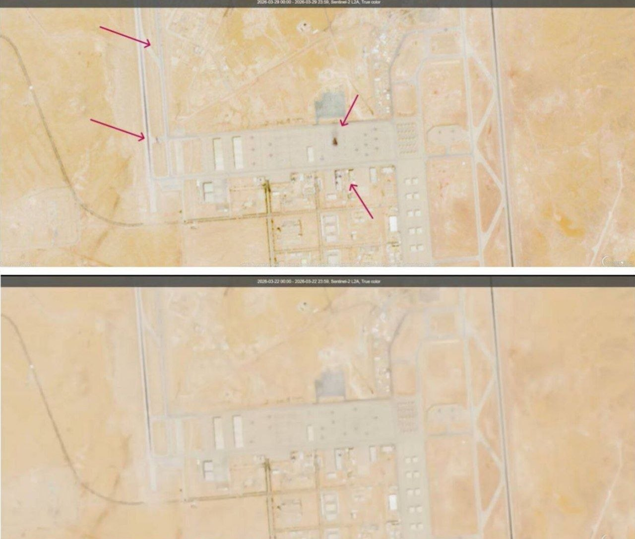 △伊朗方面发布打击沙特苏丹王子空军基地相关设施前后卫星对比图