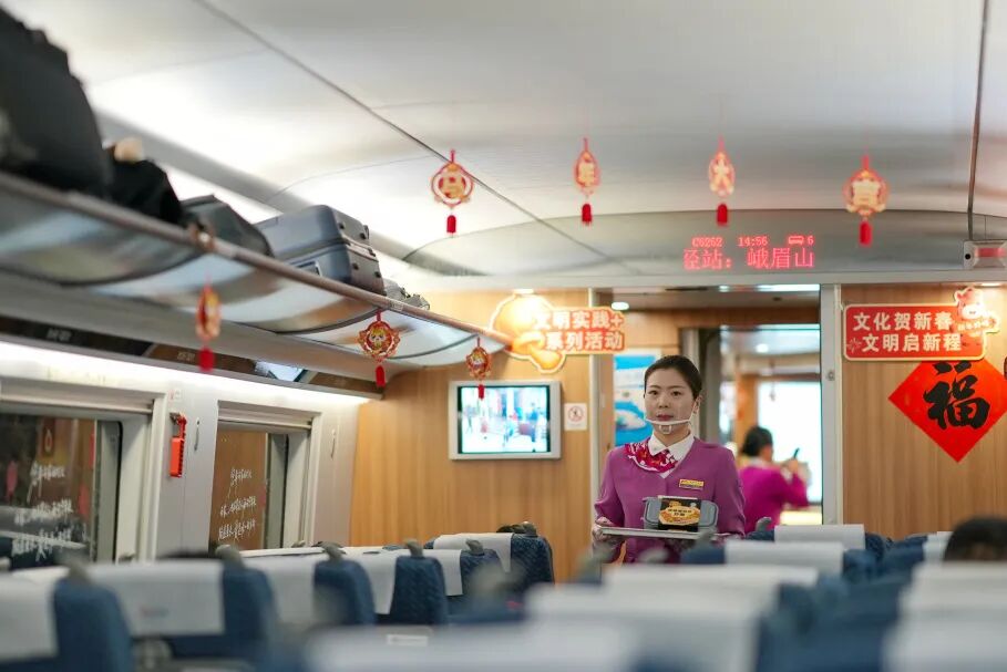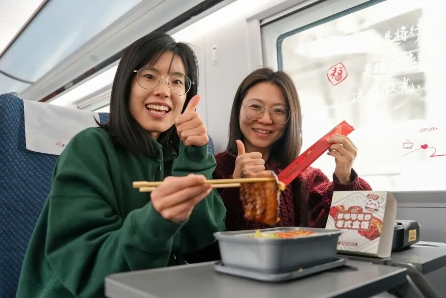 新品上新不止于此。今年,成都局集团公司在管内部分动车组列车上试行推出“莽嘟嘟”老式蛋炒饭热链套餐。热链套餐与冷链餐食同步供应,进一步满足旅客的多元化用餐需求。