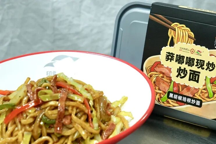 同时,成都铁路川之味旅服有限责任公司首次推出热链炒面套餐,圆面条煮至八分熟后过冷水,保证口感爽滑,搭配培根、蔬菜与黑胡椒快速翻炒,辛辣鲜香兼具。