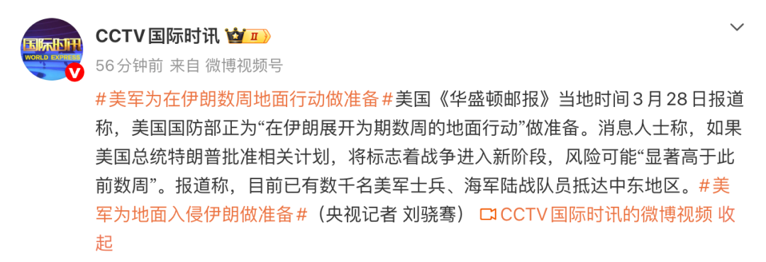 据央视新闻,当地时间3月28日,据美国方面消息,美国国防部正为在伊朗展开为期数周的地面行动做准备。