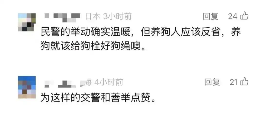 顺顺:上海长宁的这两位交警同志很棒!尊重生命、关爱动物的城市才是真正的文明城市。