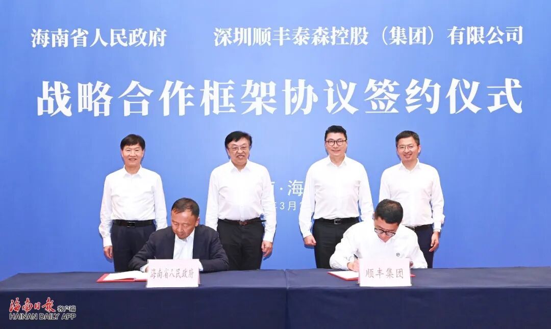 3月29日,海南省政府与顺丰集团在海口签署战略合作框架协议。省委书记冯飞、省长刘小明,顺丰控股股份有限公司董事长兼总经理王卫见证签约。