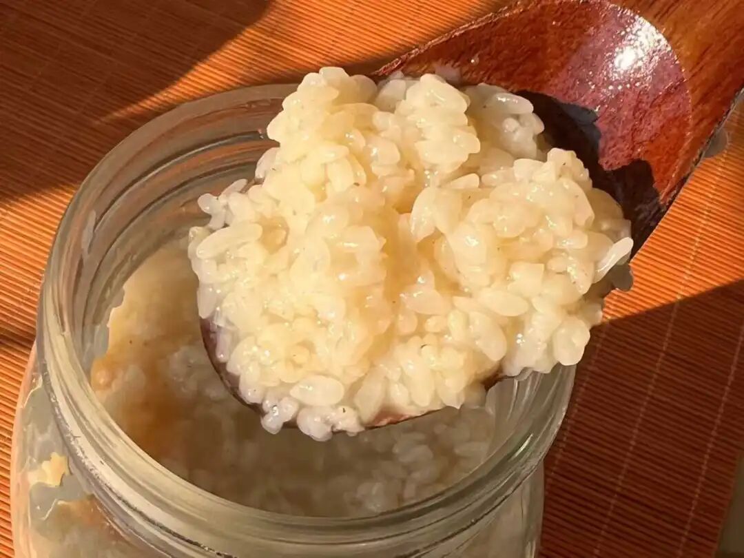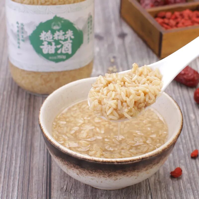 糙糯米甜酒酿,保留了米皮和胚芽,口感更有层次,咀嚼间带着微弹的颗粒感。