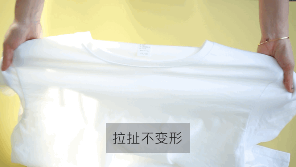 这款T恤弹性好,拉扯后不易变形,用洗衣机甩烘后版型依然板正有型。