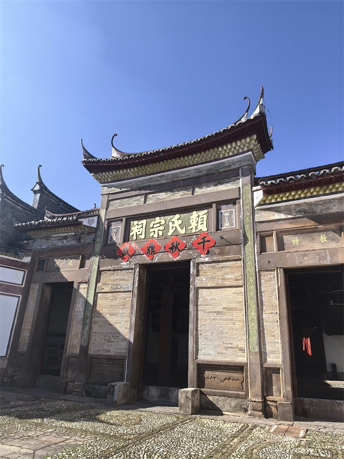 赖氏宗祠门楼下“来了即是心意,喝酒不必送礼“的标语。刘川 摄