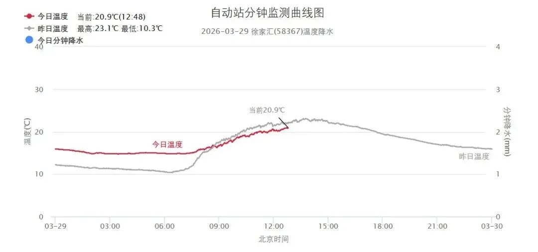市区徐家汇站22.1℃,