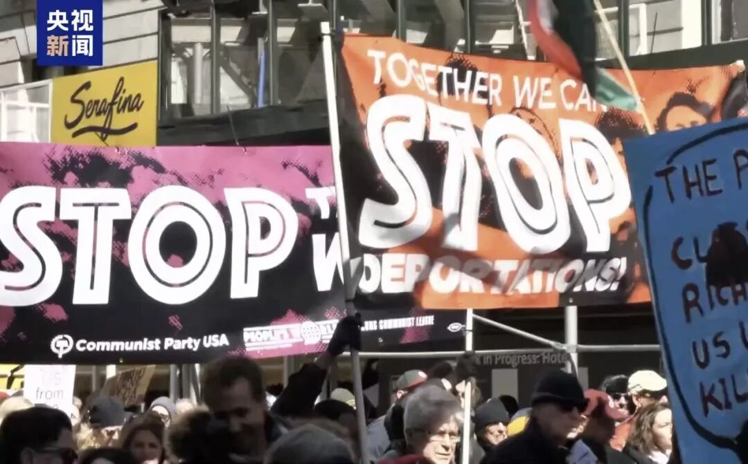 在西海岸的旧金山,数千民众走上街头,抗议特朗普政府粗暴的移民政策,呼吁结束美以伊战争。