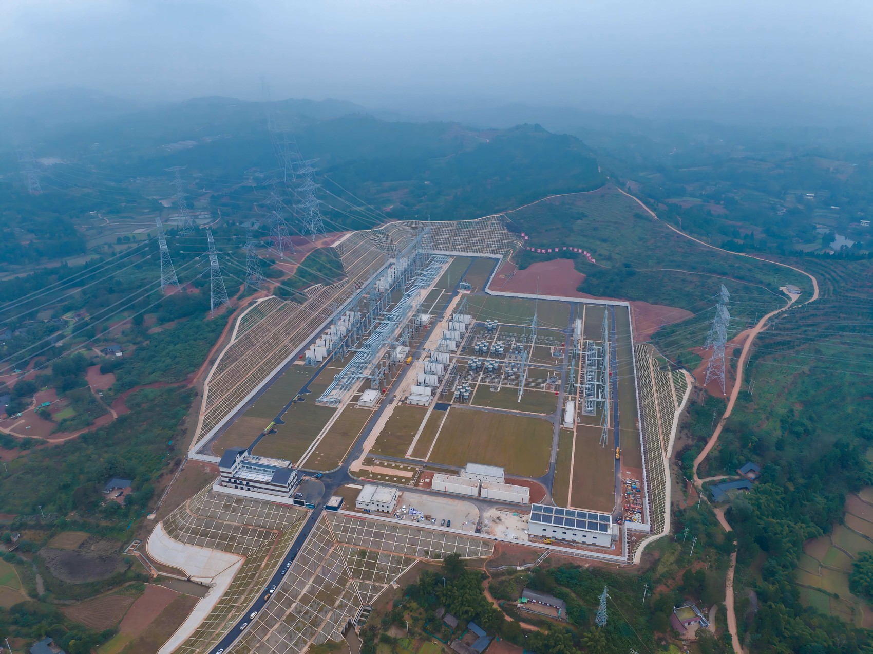 天府南1000千伏特高压变电站于2025年投运,新开工的攀西特高压交流工程将对天府南站进行扩建。严晶铖 摄