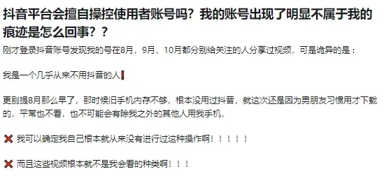 还有网友分享称,某短视频平台有时也会擅自操控使用者账号,给关注的人分享视频,但实际情况是,自己平时根本不用。