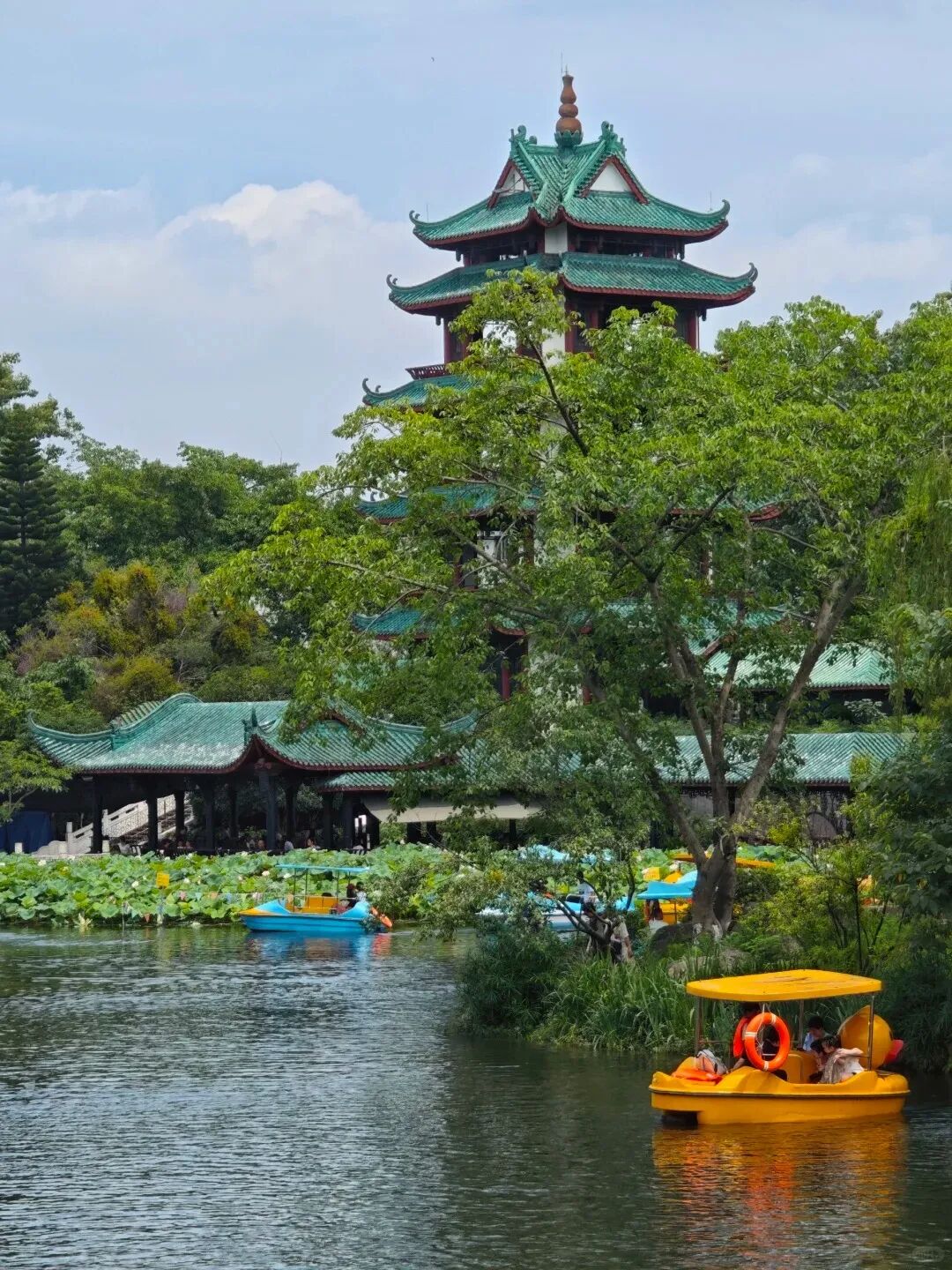 除了紫藤,桂湖公园也是一座值得打卡的古典园林!公园始建于隋唐时期,园内古树掩映,郁郁葱葱。