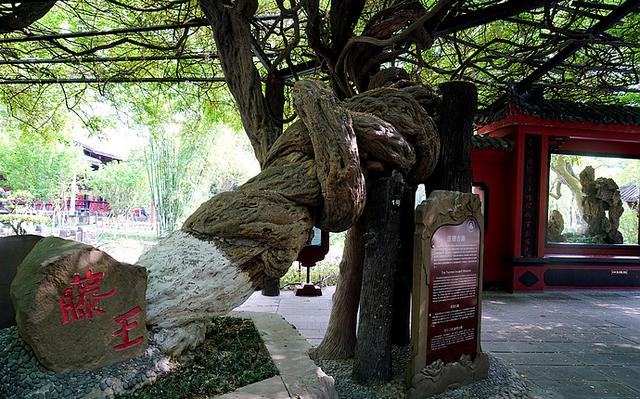 其中一株,据说是明代状元杨升庵五百多年前衣锦还乡时亲手栽植,被公认为中国庭院中最大、最古老的紫藤,获得了“中国藤王”的美誉。