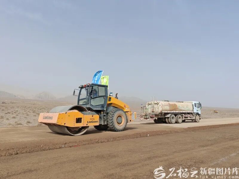 “路面底基层试验段用于收集碾压压实度数据,比如含水量、碾压遍数等,这些数据会与技术标准比对,如果有偏差会及时调整,如果符合标准,我们就根据这个‘配方’开始路面施工。”G581线喀什至乌恰公路建设项目负责人罗燕说。