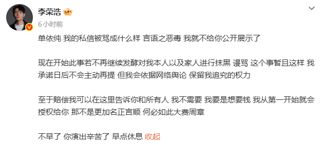 单依纯在3月30日二次发博回应,“错误全在我,与任何人无关”,个人承担全额版权费与赔偿;李荣浩则回应:不再主动提此事,但保留追责权;禁止网暴抹黑其家人。双方的处理都很干脆,就事论事,防止变成一场网络乱烩。