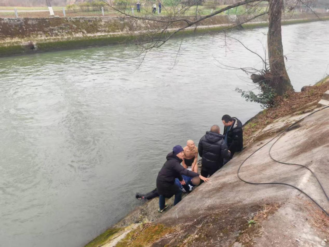 此时,落水男子已失去意识,只有眼睛还能微微转动。方桥村村委会委员吴柯和巡逻队员、现场群众迅速行动起来,抛下救生圈、递过救生杆。10时15分,在大家共同努力下,刘桂元和落水者被成功拉上岸。