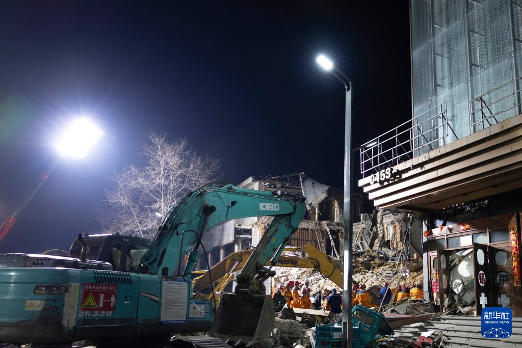 3月29日,救援人员在海林市海林镇建筑坍塌现场进行救援。新华社记者 张涛 摄