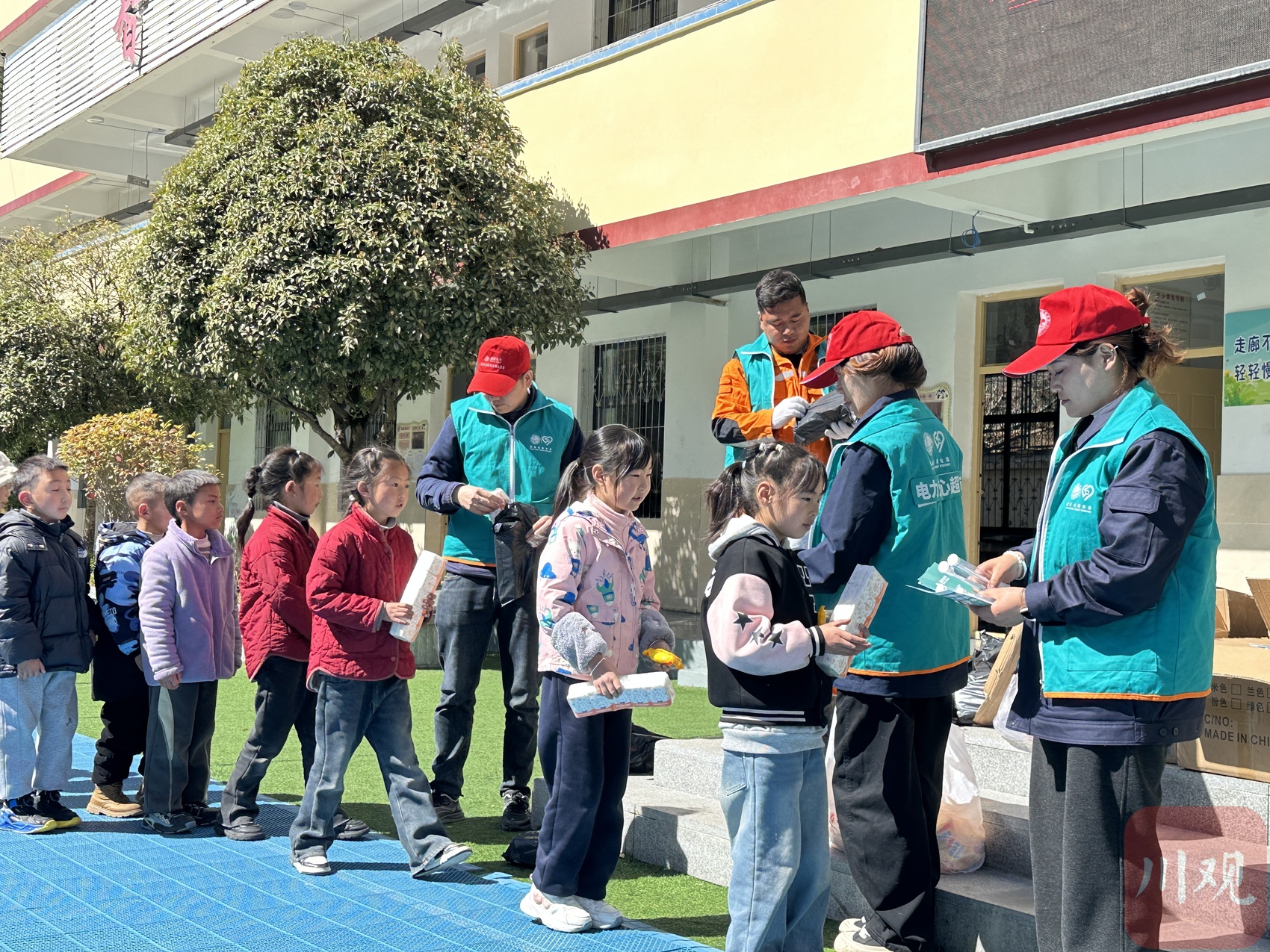 这是国网黑水县供电公司羊角花志愿服务队依托“电力爱心超市”平台,开展的一项服务活动。志愿者们分三个部分,将安全知识、积分激励送到师生与村民身边。