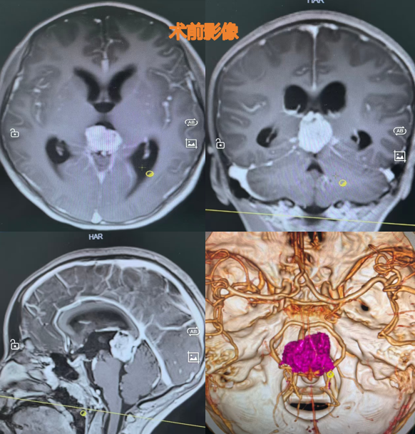 按照治疗指南,首先要进行开颅手术取得病理活检标本,同时解决梗阻性脑积水问题,缓解颅内高压,为后续治疗争取时间。由于肿瘤血供极为丰富,术中情况极不稳定,继续操作将显著增加出血、脑损伤等风险。为保障患者安全,团队及时调整手术策略,中止切除,并依据术中脑组织肿胀情况,去除部分颅骨骨瓣,以缓解颅内压力,为后续康复治疗创造条件。