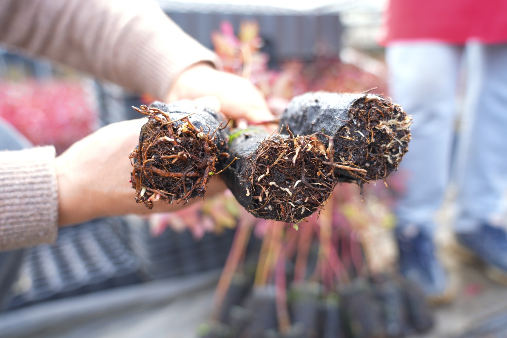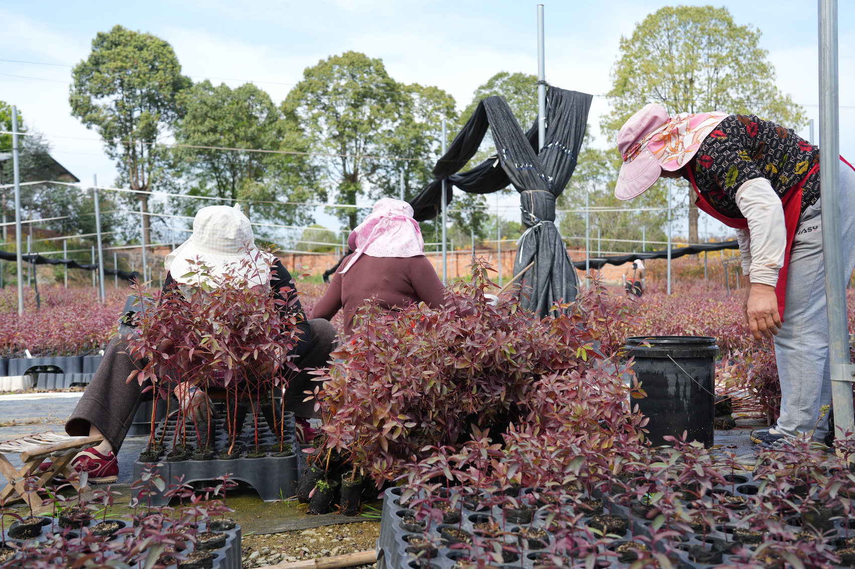 工人们对一批即将发货的幼苗进行预先处理。