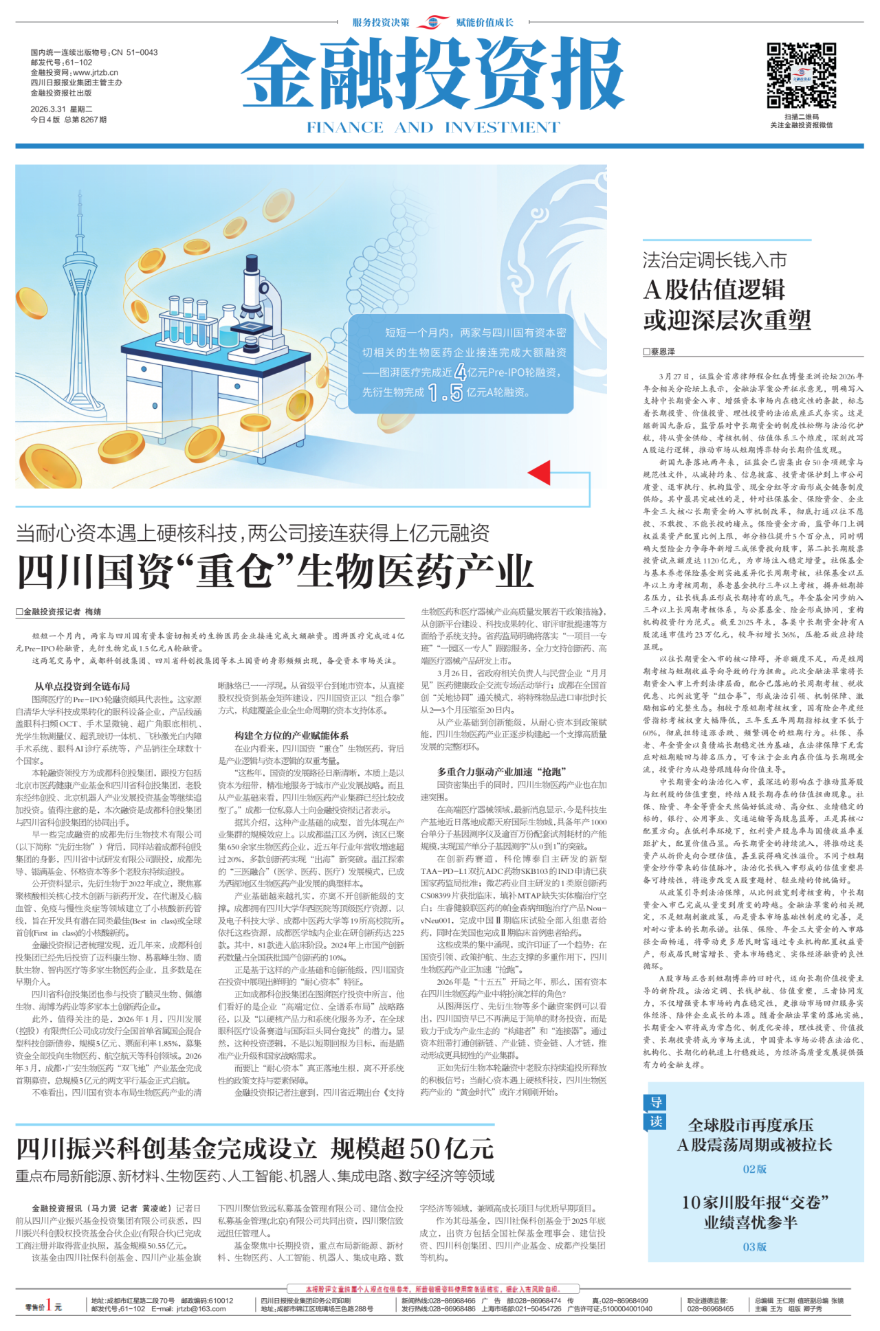 短短一个月内,两家与四川国有资本密切相关的生物医药企业接连完成大额融资。图湃医疗完成近4亿元Pre-IPO轮融资,先衍生物完成1.5亿元A轮融资。这两笔交易中,成都科创投集团、四川省科创投集团等本土国资的身影频频出现。