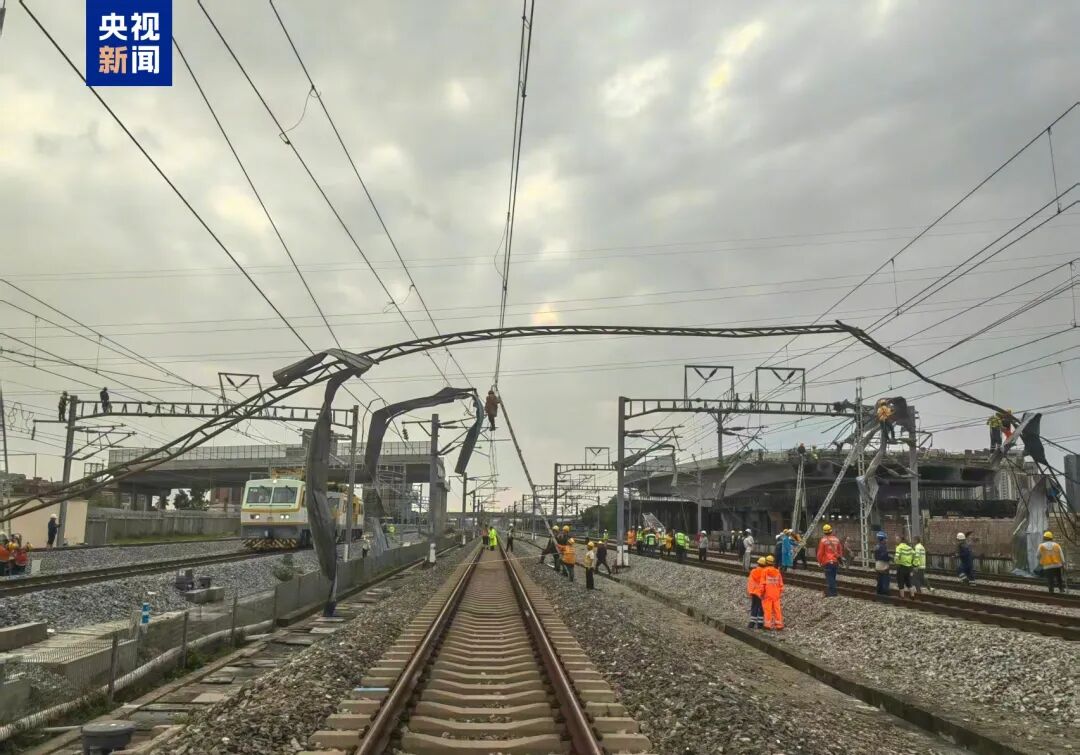 3月29日15时许,龙卷风将铁路沿线一处彩钢瓦棚顶连同30多米长的钢架梁一起吹至高铁接触网,导致南广高铁、贵广高铁广州南至佛山西站间和广湛高铁佛山至荔湾所间接触网挂异物停电,部分列车出现不同程度晚点、停运。经铁路部门全力抢修,3月29日18时12分广湛高铁、18时35分南广、贵广高铁接触网异物已被清理完毕,设备恢复供电,列车运输秩序正逐步恢复。