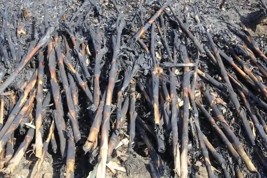 把秸秆、杂草、枯枝一把火烧掉