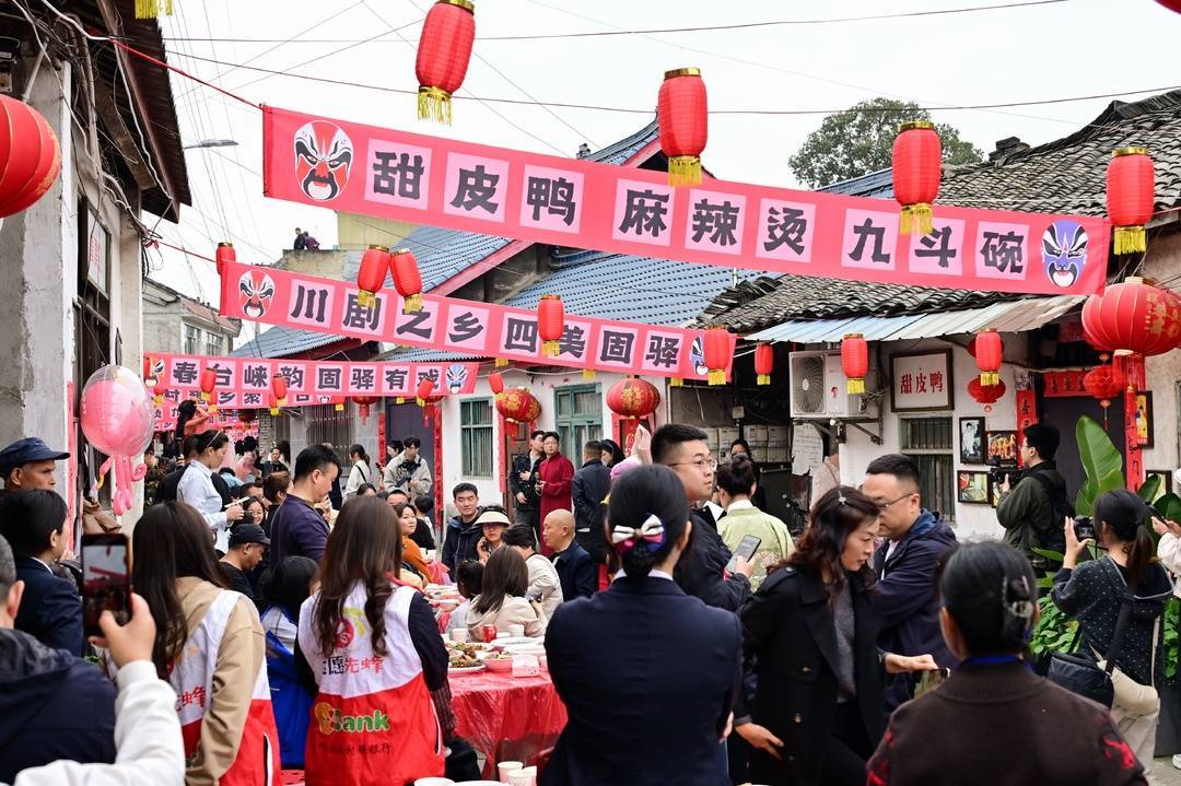 活动推出的“戏剧九斗碗·麻辣春台情”主题长街坝坝宴成为一大亮点。固驿麻辣烫、甜皮鸭等地方特色美食集中亮相,打造出鲜活的固驿“味觉名片”,吸引众多市民踊跃报名参与体验。