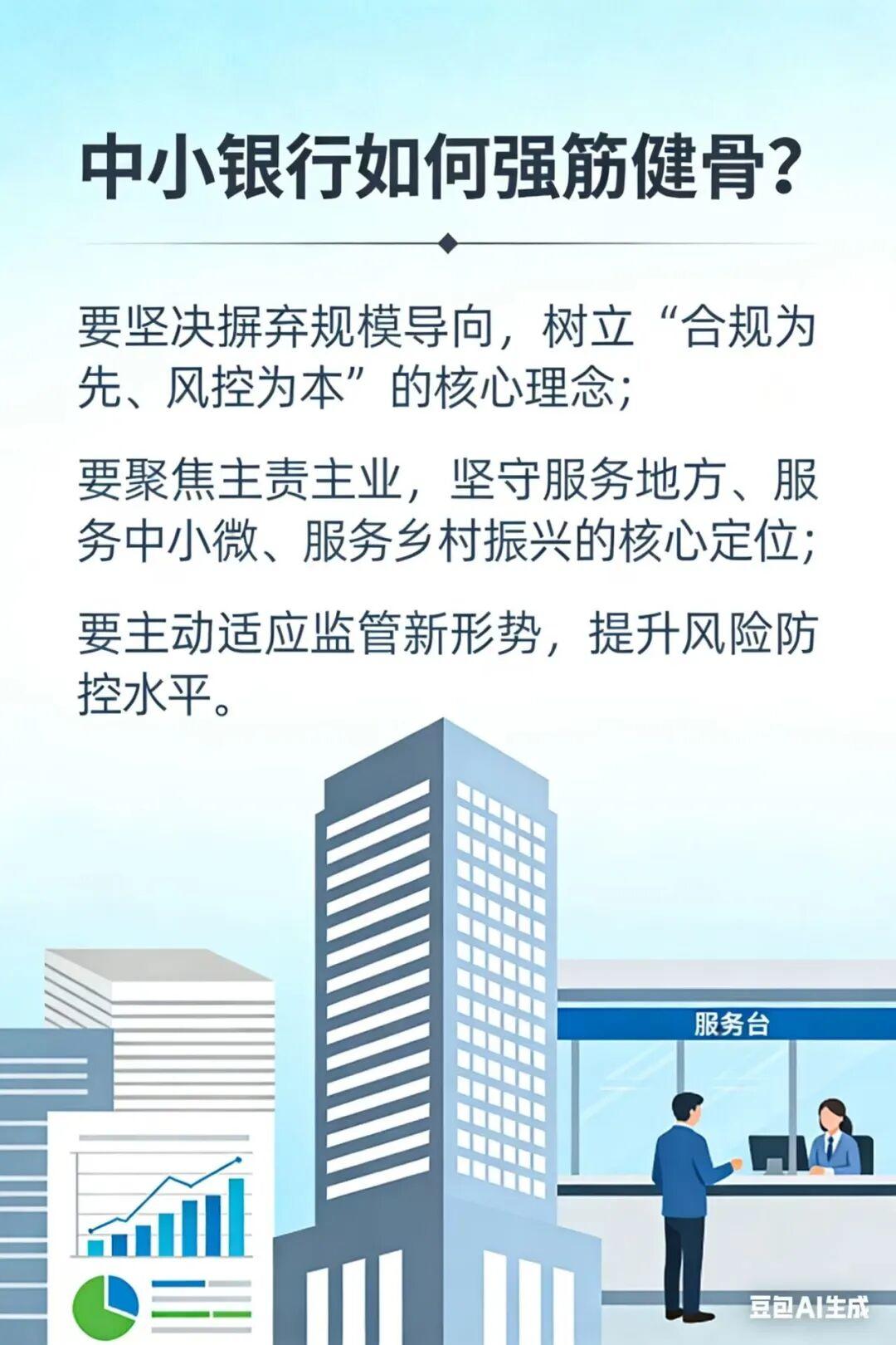在大型银行占据规模优势的格局下,中小银行要做好错位发展,精耕细作本地市场,重点发力普惠金融、养老金融、绿色金融等细分领域,构建差异化服务能力;更好服务本地小微企业和“三农”客群,创新“银行+合作社+农户”“政银企协同”等服务模式,切实发挥“毛细血管”作用,将更多金融资源投入区域经济发展和乡村振兴,杜绝盲目扩张、偏离主业的违规行为,同时严厉杜绝高息揽储、非理性定价等违规竞争行为。