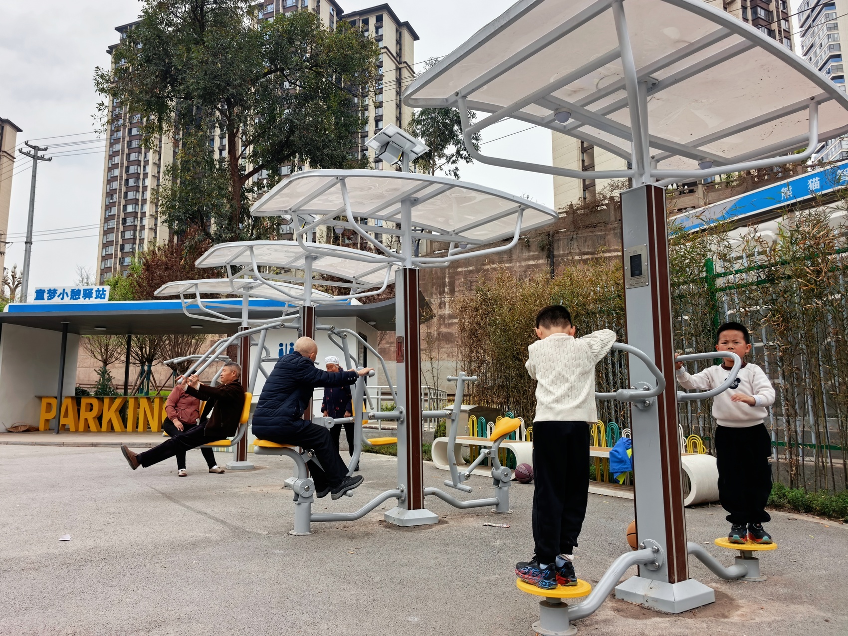 “这个公园修得很巴适,有专门的设施,路也很平顺。我们小区就在这旁边,来锻炼、走耍都很方便,不跑远路。”自从公园开园后,王世强几乎每天来打卡一次。