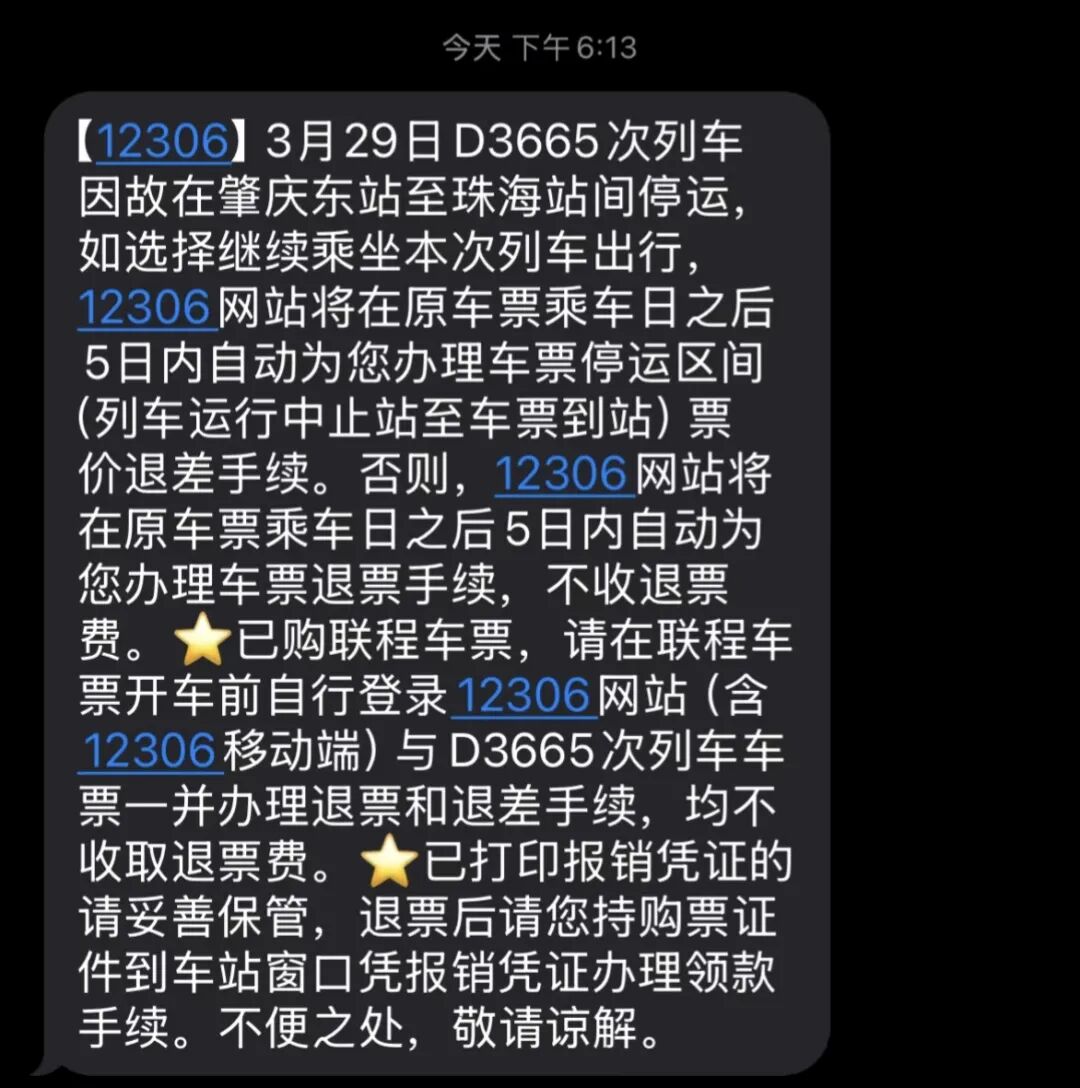 据陈星回忆,列车到达广州南站时当地仍在降雨,但雨势已不大。陈星原本需在广州南站中转前往深圳北,她了解到,铁路部门对本次列车的中转乘客实行灵活处置,只需说明系D3665次列车旅客,即可随机搭乘任意一趟列车前往最终目的地。“这个灵活处理要点个赞。”陈星表示。