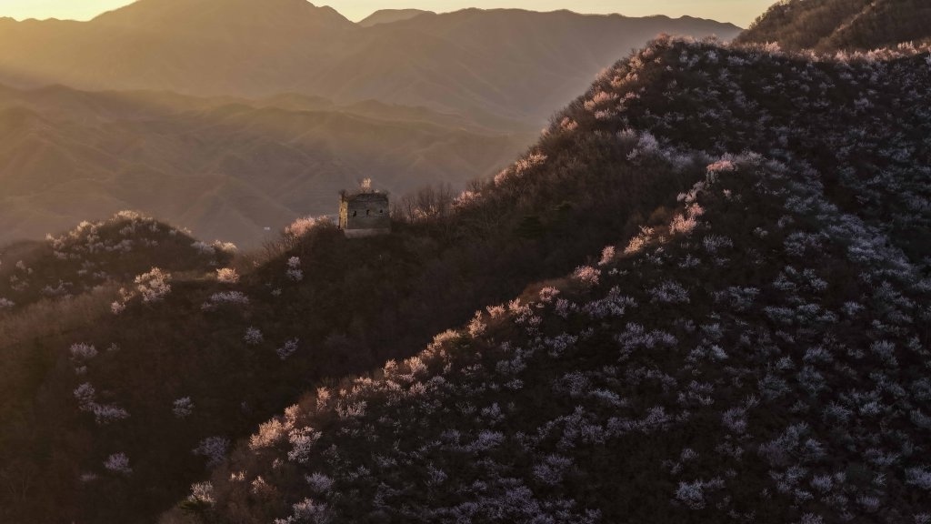 近日,随着气温回暖,河北省唐山市迁西县的长城周边山花烂漫,美如画卷。