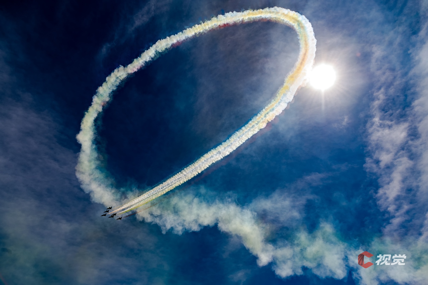 第九届空军航空开放活动,歼-10六机编队筋斗表演。