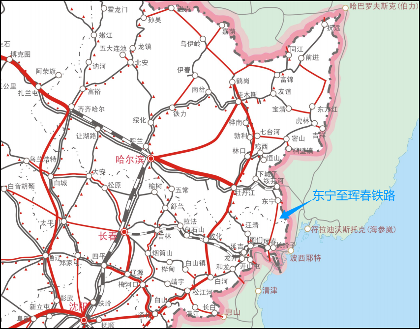 东宁至珲春铁路走向示意图(仅供参考)