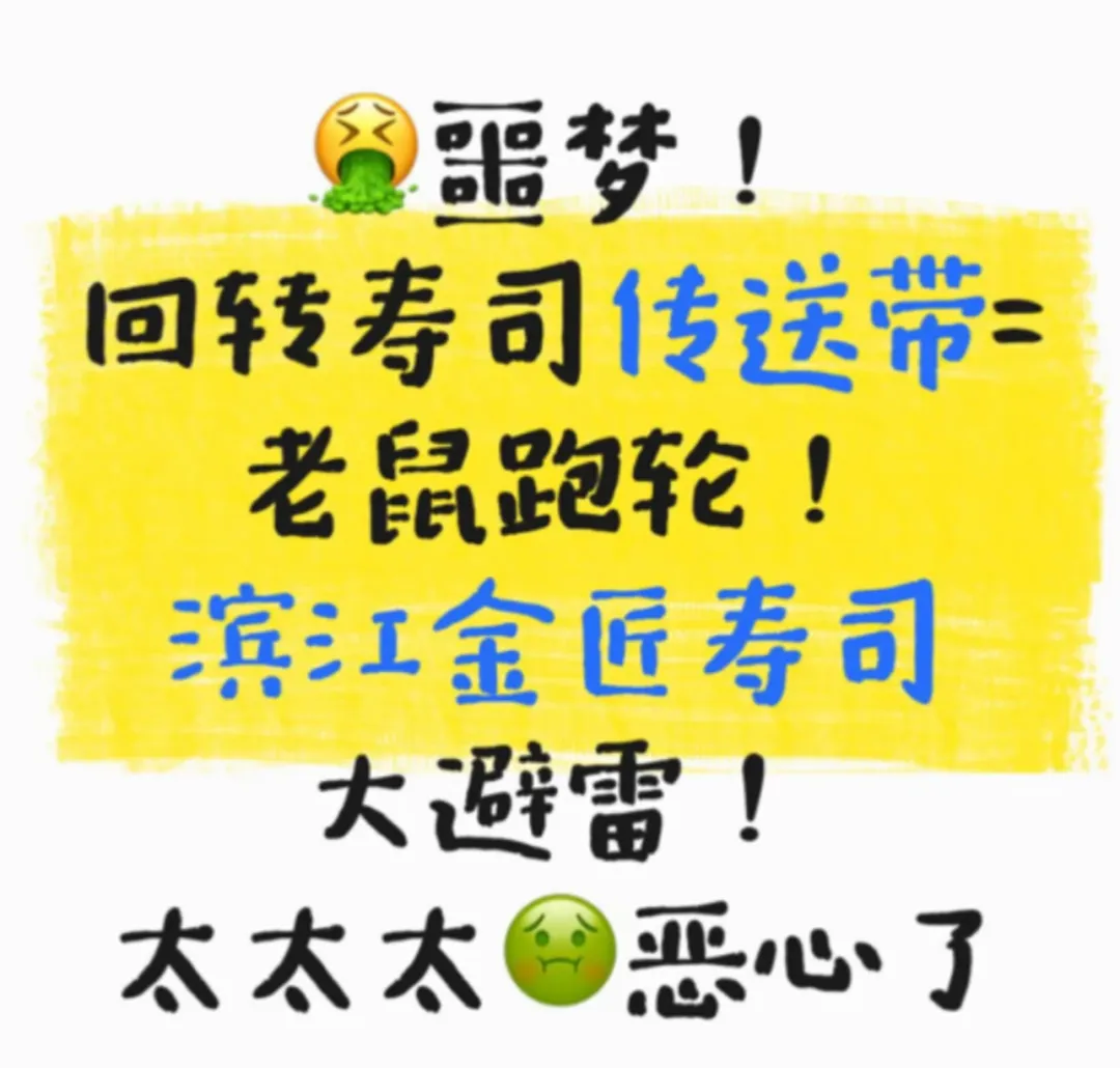 3月29日,浙江杭州一顾客在社交平台反映,其在金匠寿司(滨江宝龙城店)就餐时发现一只老鼠,在回转寿司的传送带上奔跑,而传送带旁正摆放着供顾客食用的寿司。