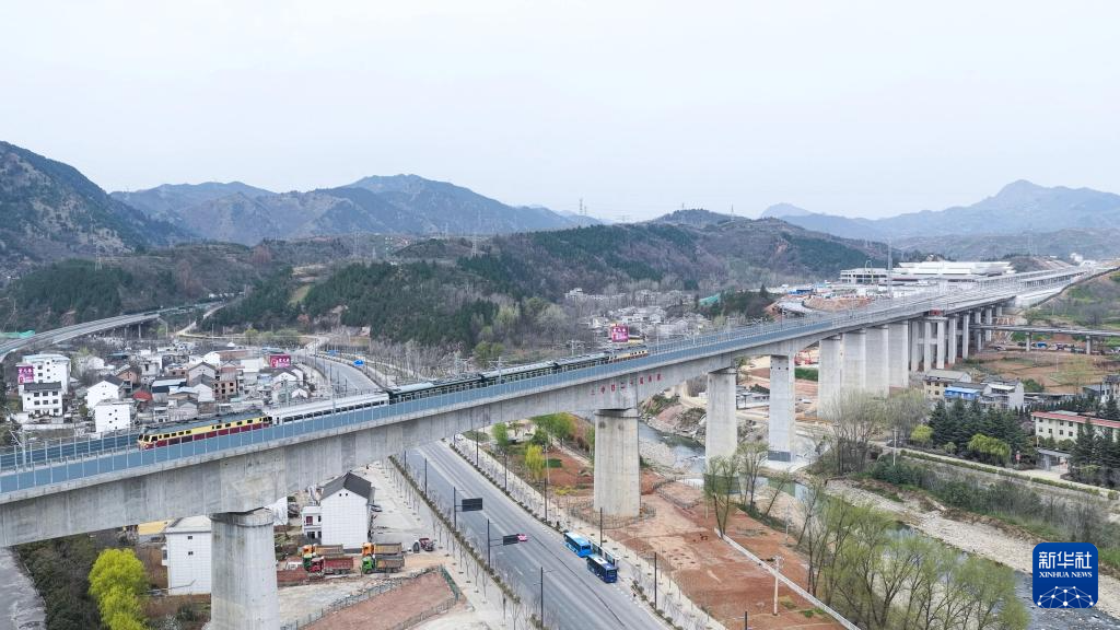 3月29日,检测列车从建设中的西安东站驶出,开往湖北郧西站。