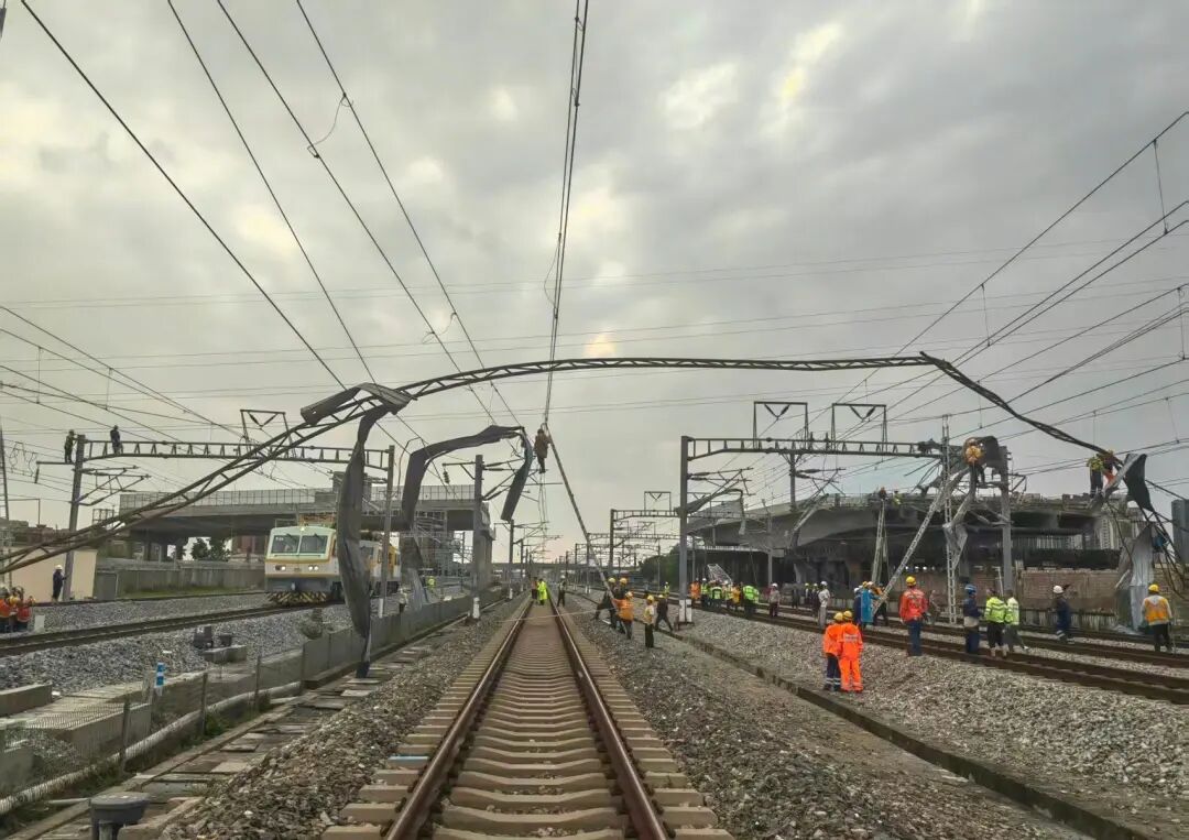 3月29日晚,广州铁路通报称,29日15时许,“龙卷风将铁路沿线一处彩钢瓦棚顶连同30多米长的钢架梁一起吹至高铁接触网”,导致南广高铁、贵广高铁广州南至佛山西站间和广湛高铁佛山至荔湾所间接触网挂异物停电,部分列车出现不同程度晚点、停运。经铁路部门全力抢修,29日18时12分广湛高铁、18时35分南广、贵广高铁接触网异物已被清理完毕,设备恢复供电,列车运输秩序正逐步恢复。