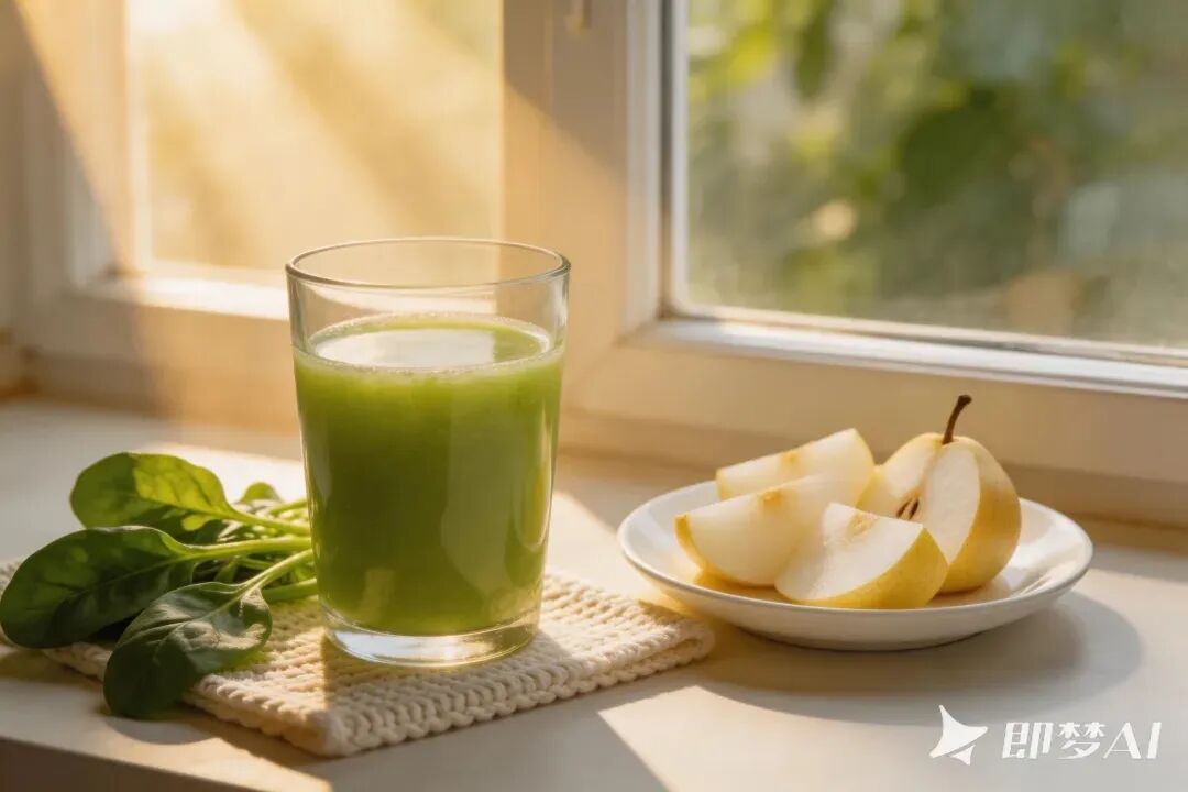 食材:菠菜100克、雪梨1个(去皮去核)、清水300毫升、蜂蜜(可选)。