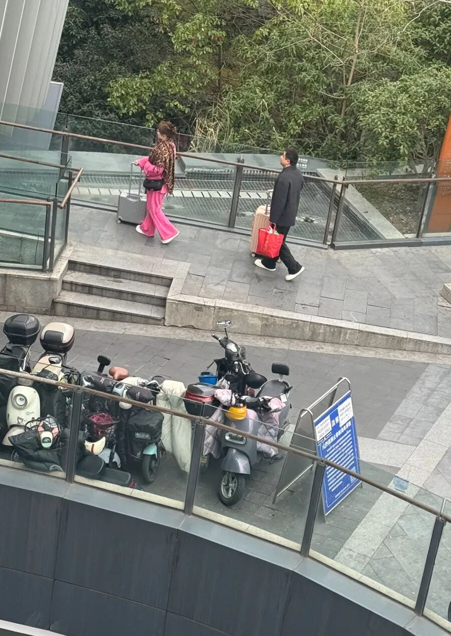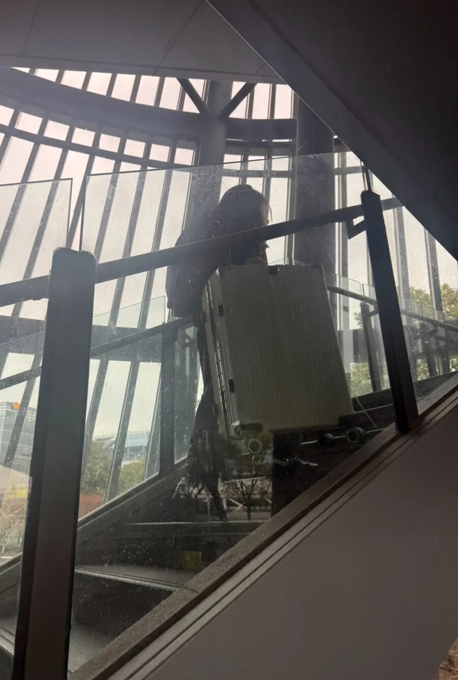 这一旋转楼梯的客流量较大,同时携带大件行李的旅客较多。