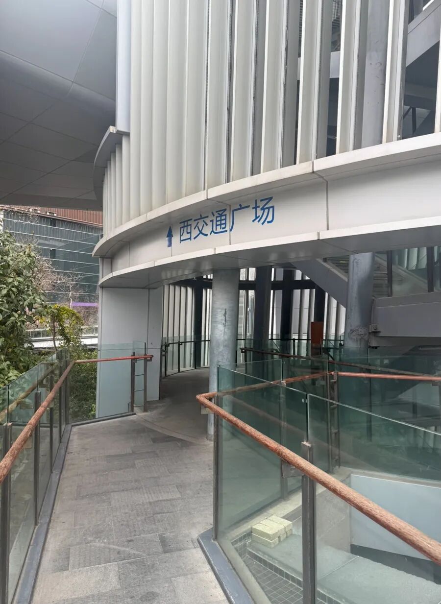 旋转楼梯入口有“西交通广场”的字样。