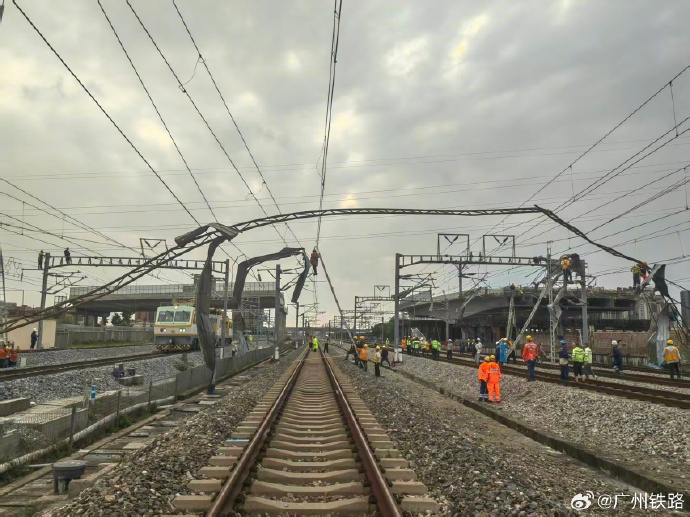 经铁路部门全力抢修,3月29日18时12分广湛高铁、18时35分南广高铁、贵广高铁接触网异物已被清理完毕,设备恢复供电,列车运输秩序正逐步恢复。