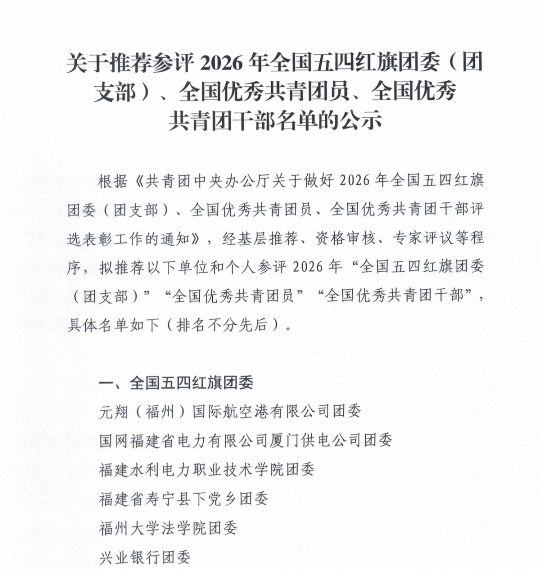 参评2026年全国五四红旗团委(团支部)全国优秀共青团员全国优秀共青团干部