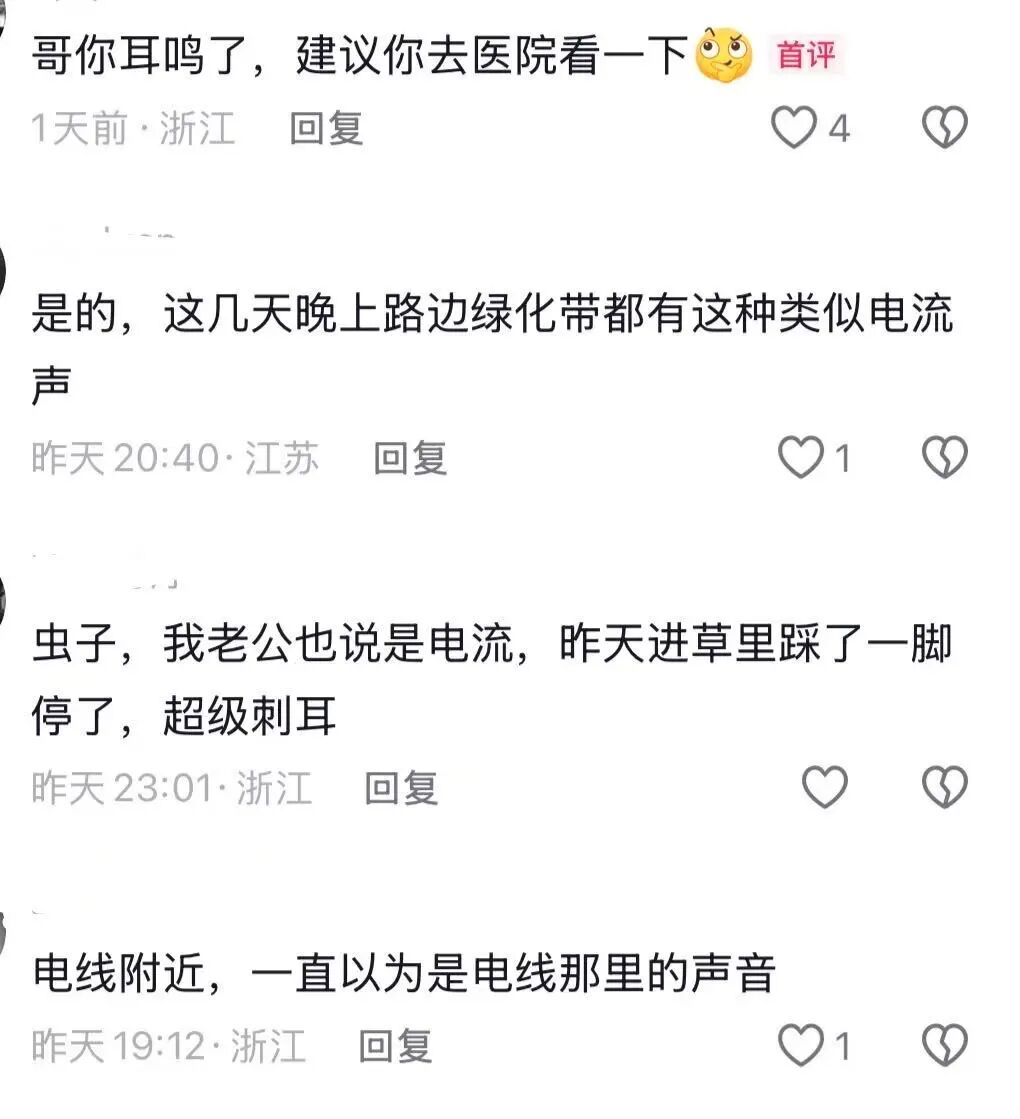 近日,一则关于“杭州转塘附近常出现高频电流声”的网友求助引发热议。评论区中,不少富阳、临平、余杭等地网友表示,自己也听到了持续数日的电流声;上海、无锡等地的网友纷纷跟帖,称近期也听到类似声响,甚至一度怀疑是耳鸣。对此,有人调侃“赶紧去查查耳朵”,也有人提议联系电力部门排查。