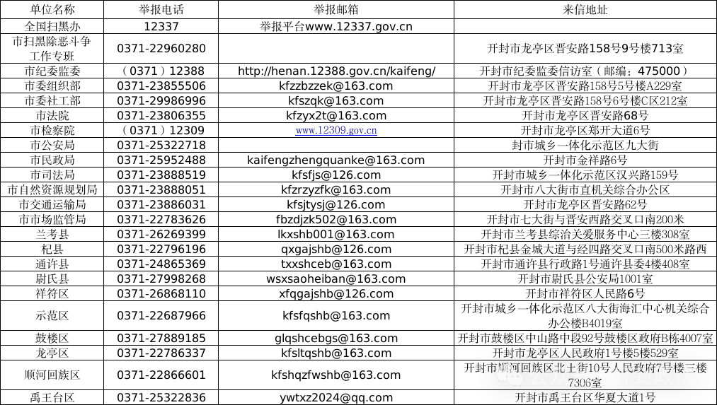 开封市扫黑除恶斗争专项工作小组